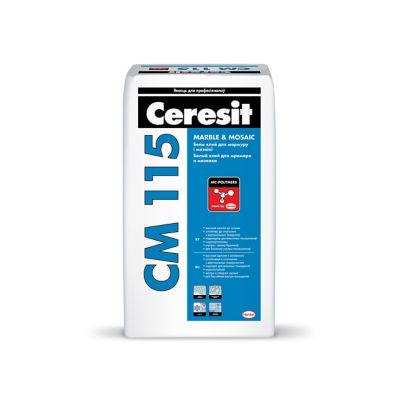 klej ceresit cm 115 dlya mramornoj plitki i steklyannoj mozaiki belyj 25 kg