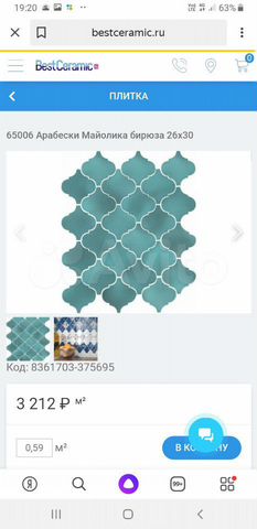 nastennaya plitka arabeski majolika biryuza 65006 26x30 ot kerama marazzi rossiya