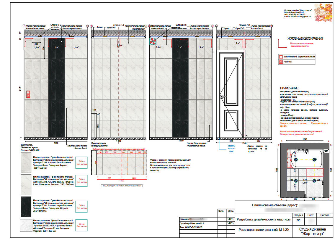 raskladka plitki v vannoj shemy i