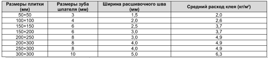 rashod kleya dlya plitki na 1m2 raschet